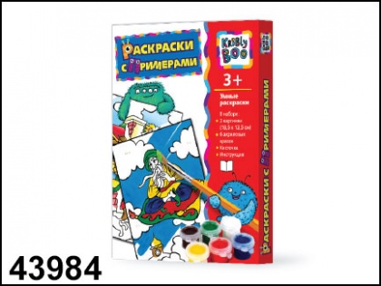 В набор входит: 2 картинки, 6 акриловых красок, кисточка, инструкция.
