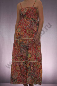 Красивый сарафан на тонких регулируемых бретельках. Платье декорировано контрастным рисунком.