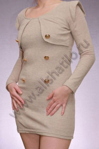 Оригинальное эффектное платье с длинными рукавами и округлым вырезом горловины. Передняя часть платья украшена декоративными пуговицами.