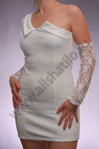 Асимметричное облегающее кружевное белое платье с одним рукавом. На одной руке оригинальная манжета.