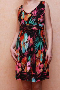 Потрясающее платье с ярким цветочным принтом. Удобные широкие бретели, декоративный пояс. На спине широкая резинка.