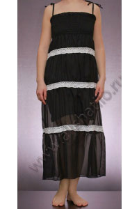 Великолепное длинное платье на изящных завязках украшенных деревянными бусинками. Юбочная часть декорирована оригинальным небольшими вставками из кружева.