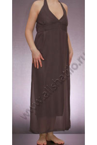 Длинное серое платье с V-образным вырезом на бретели-петле, что выгодно обыгрывает прекрасное декольте. Платье с завышенной талией и открытой спиной, Сбоку скрытая молния.