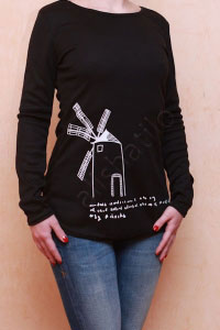 Стильный джемпер с округлым вырезом горловины и длинными рукавами. Украшен симпатичным ярким принтом на груди.