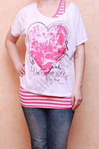 Отличный комплект туника-майка в полоску и чудесная футболка с короткими рукавами и округлым вырезом горловины.